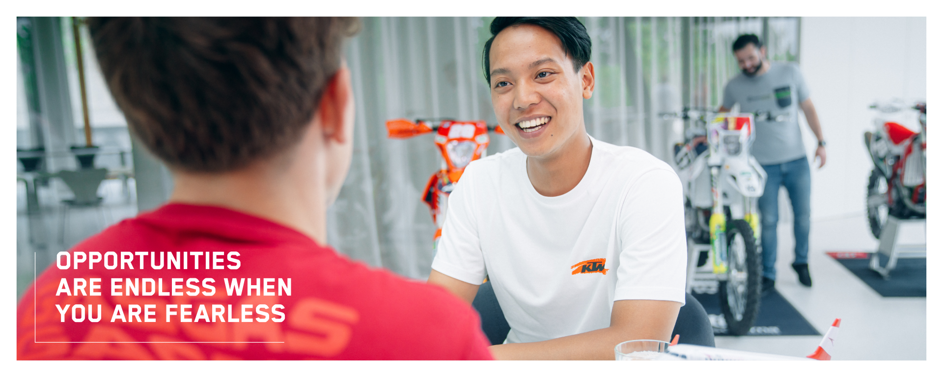 Folge deiner Leidenschaft und gib Vollgas für deine Zukunft. Bei der KTM AG hast du die Chance, mit Hochleistungsmotorrädern zu arbeiten, sei es in der Entwicklung, der Produktion, im Marketing oder in einem der vielen anderen Bereiche. Darüber hinaus bieten wir dir zahlreiche Benefits, ein Umfeld, dass dich fördert und fordert, und immer wieder neue Abenteuer. Egal was in deinem Reisepass steht, für uns zählt deine Leidenschaft! Wir glauben an Passion, Performance, Innovation und Teamwork. Du auch? Dann #JoinTheWinningTeam!